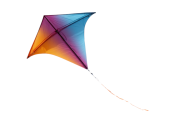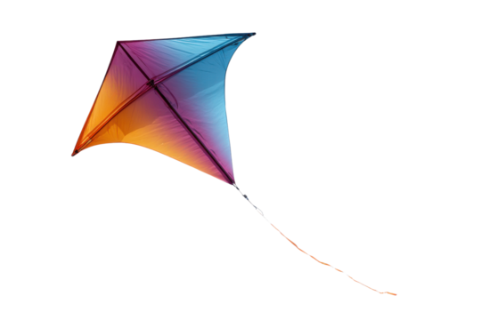 Isolated colorful delta kite with tail, aerodynamic triangle shape design for summer fun