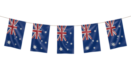 Festive Australia Day decorations with blue banners featuring the Union Jack and stars strung across a party venue