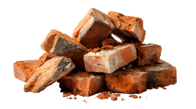Construction demolition debris including bricks, pipes, and metal scraps Isolated on a transparent background