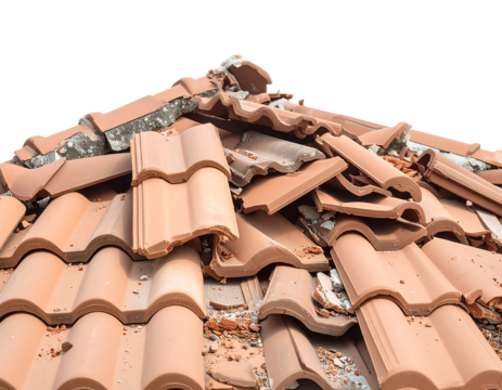 Pile of Broken Terracotta Roof Tiles on Transparent Background