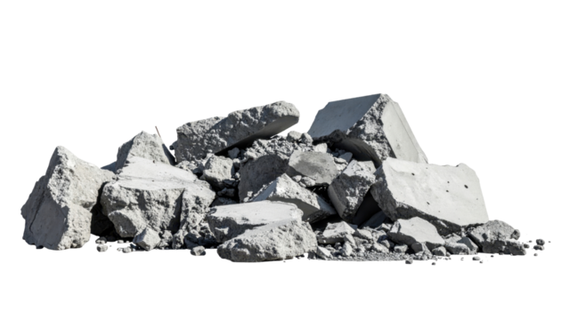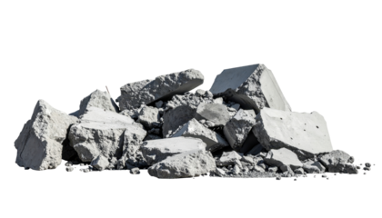 Pile of concrete debris with transparent background representing demolition and construction waste