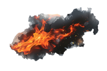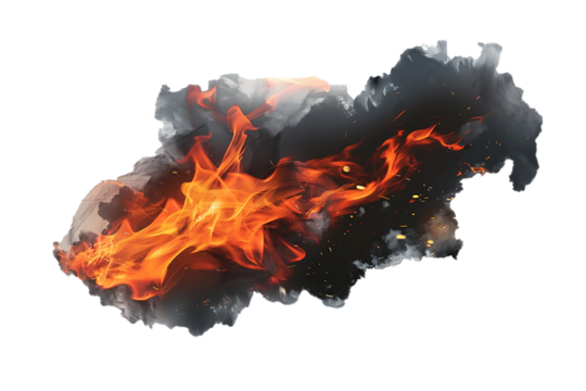 Dramatic Fire Inferno with Blazing Orange and Yellow Flames Isolated on a Transparent or White Background