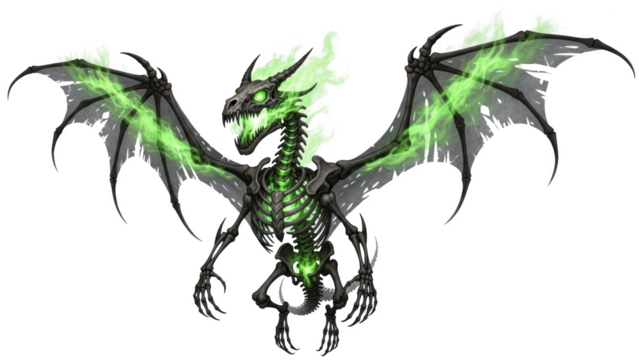 Black skeleton dragon with glowing green fire and tattered wings image