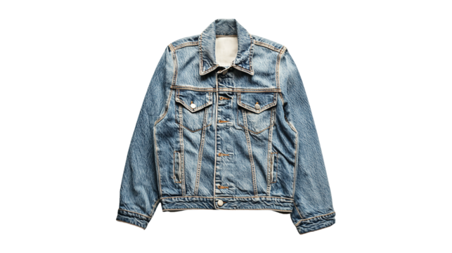 Denim Jacket in Classic Blue Color on a Transparent Background