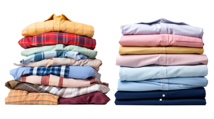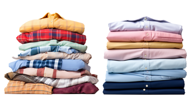 Stacks of folded clothes neatly arranged isolated on transparent background