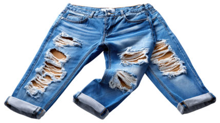 Distressed Jeans: A pair of stylish, ripped denim jeans in a captivating studio shot, exuding an aura of contemporary fashion.