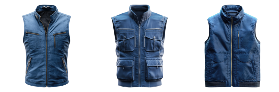 Classic blue denim sleeveless vest jacket isolated on transparent background