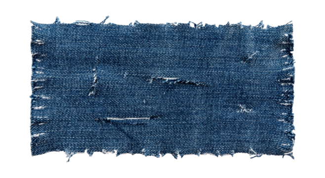 A stack of folded blue denim jeans in various shades, isolated on a transparent background