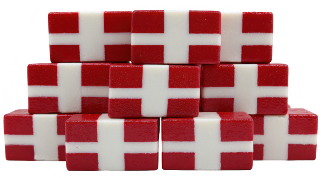 Map of denmark with the danish flag isolated on transparent background, showcasing the countrys geographical outline and national colors in a simple and symbolic representation