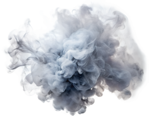 Dark cloud of dense smoke with blue hues cut out on transparent background