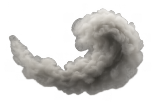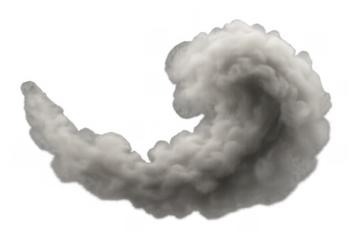 White smoke or steam plume swirling, forming a dense abstract cloud. Realistic vapor or fog effect isolated