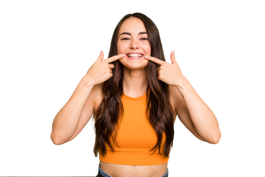 Pretty woman smiling, isolated. Beautiful female smile