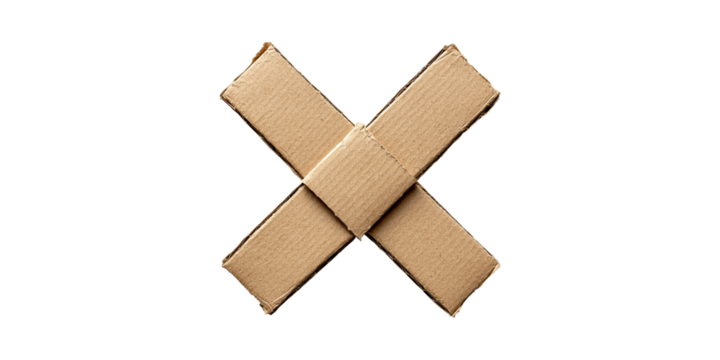 Cardboard X Symbol. Represents Rejection, Cancellation, Or Error In Communication Isolated On Transparent Background