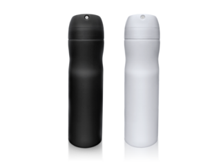 Matte black deodorant spray can standing upright isolated on transparent background PNG