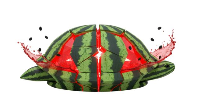 a strikingly vibrant digital illustration depicts a turtle crafted entirely from a fractured watermelon with splashes of juice on transparent background high quality professional detailed modern