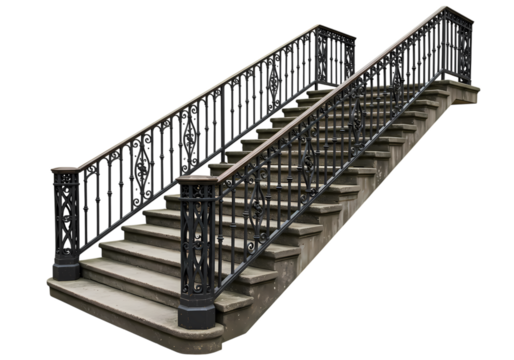 Elegant Stone Staircase with Metal Railing isolated on transparent background