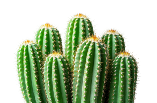 Cluster of vibrant green cactus plants with spiky thorns, desert flora, tropical succulent, decorative greenery for interiors or outdoor landscapes, isolated on transparent background