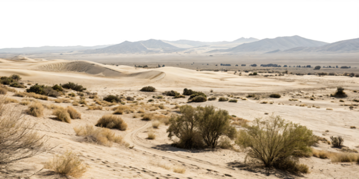 desert landscape with sand dunes and shrubs, cutout, PNG transparent background