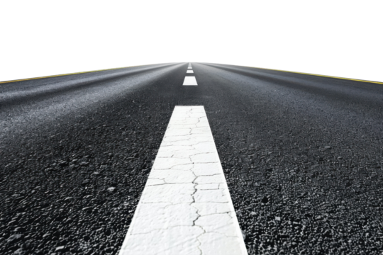 Endless journey ahead on a deserted highway stretching to the horizon under a clear sky isolated on transparent background