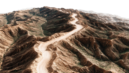 Arid Rocky Mountain Landscape with Dry Slopes, Boulders, and Vegetation under Harsh Sunlight in Remote Region. cut out object with transparent background
