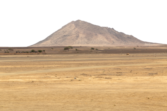 Rocky desert landscape with mountain in the background and transparent sky. Background suitable for 3D compositing