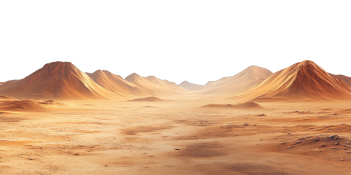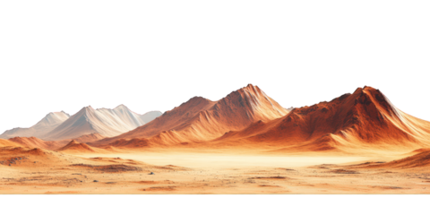 Mars-like desert landscapes with golden orange mountains and sand dunes, cut out. Extraterrestrial terrain visualization for science fiction and space concepts.Dramatic 3D rendered environment with ba