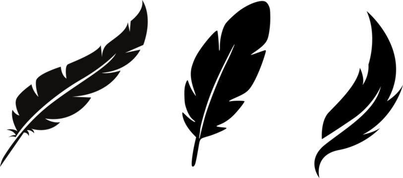 Feather Set  Pngs On Isolated white for writing calligraphy and vintage feather design element
