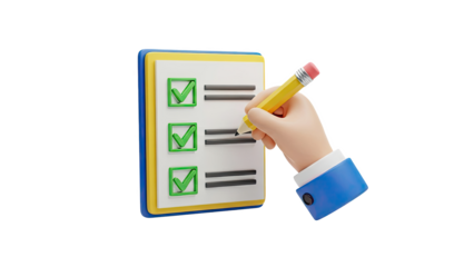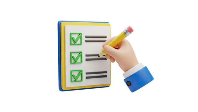 3D Illustration of Hand Checking Items on a Checklist