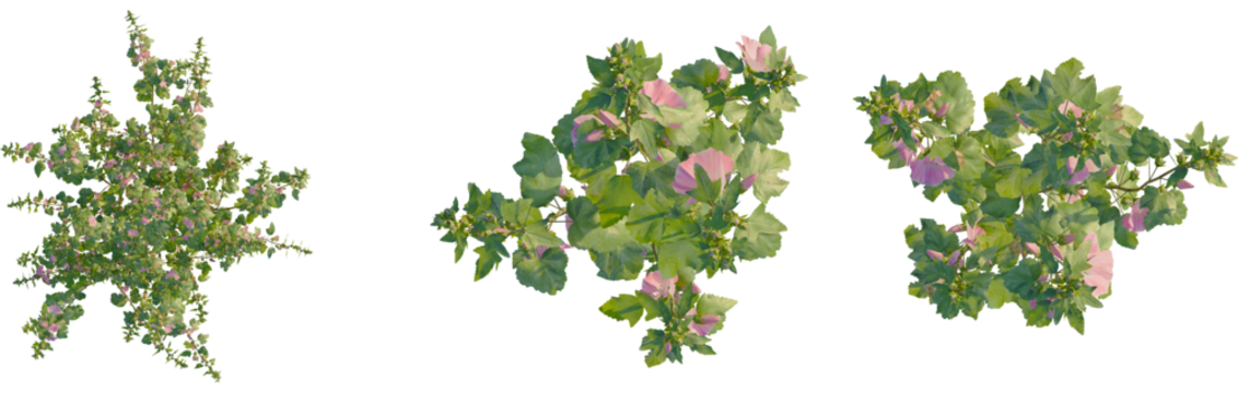 Lavatera clementii tree plan, top view, cutout, transparent background, isolate, Hollyhock plants bloom beautifully adding vibrant life to garden designs