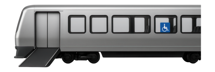 Passenger train car with wheelchair-accessible entry and designated spaces
