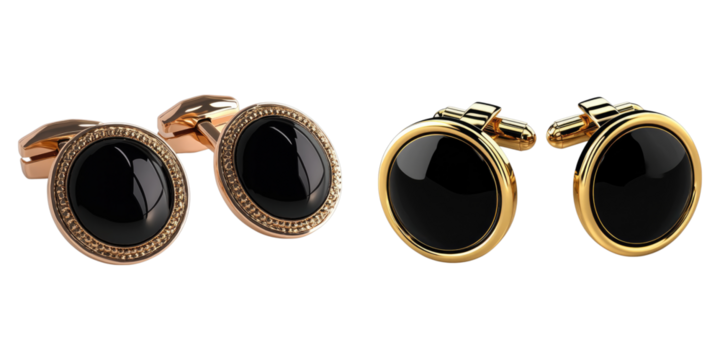 Elegant oval gold cufflinks with black onyx inserts displayed against a stark black background for a sophisticated look