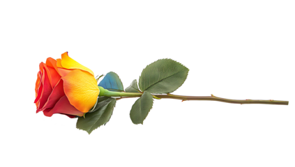 A single red rose with green leaves, perfect for expressing love and romance, isolated on a white background as transparent PNG.AI GENERATED