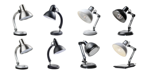 Variety of Desk Lamps for Modern Workspaces, PNG collection, set bundle, isolate on transparent or white background