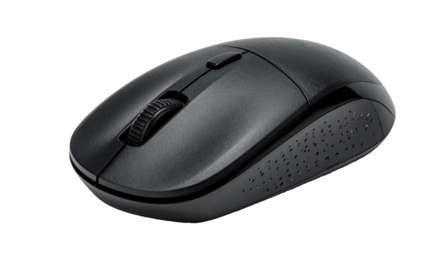 Teal ergonomic computer mouse isolated on transparent background, wireless gaming accessory