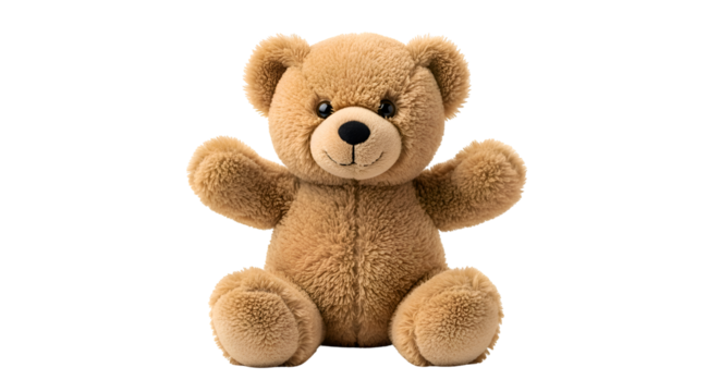 A soft toy teddy bear on a clear, transparent background.