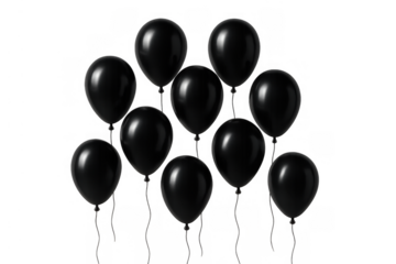 Black balloons floating in celebration, festive elements for party, birthday, anniversary events, elegant isolated decoration