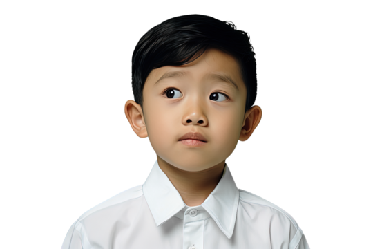 Joyful child standing with transparent background, perfect smiling expression