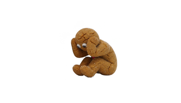 Sad Sugar Cookie Humanoid Character Sitting Next to Wall