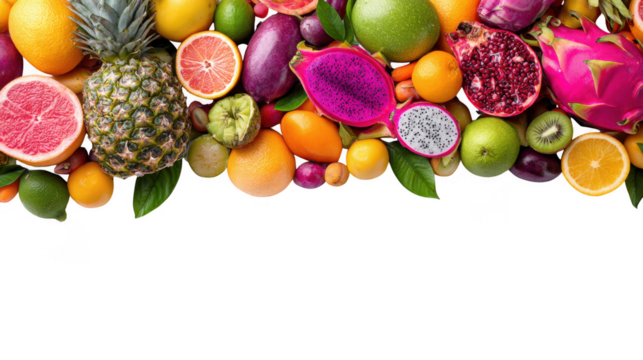 Healthy Mixed Colorful Tropical Fruit Pile Horizontal on Transparent Background