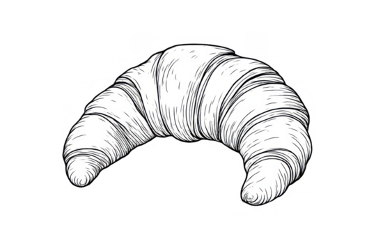Croissant pastry baking illustration, hand drawn sketch style, fresh french food for breakfast with transparent background