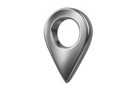 Shiny chrome map pointer symbolizing gps navigation and locating a particular destination on a map