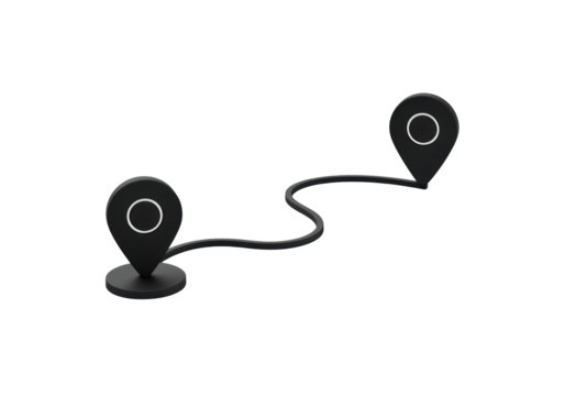 Black and white destination pins on transparent background