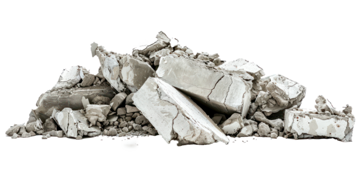 Ruined concrete buildings with debris pile isolated on a transparent background destroyed buildings