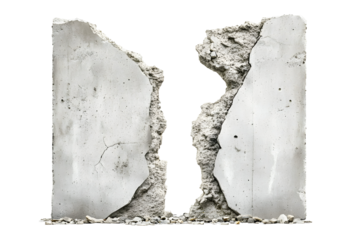 Pile of concrete rubble isolated on transparent background representing destruction