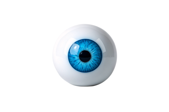 Realistic blue human eye with detailed iris patterns and natural reflections showing anatomical precision and clarity, isolated on a transparent background