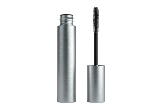 Two mascara brushes close-up against a black background, cosmetic beauty tools with textured bristles