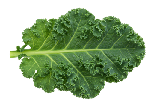 Isolated fresh leaf of green kale vegetable for healthy eating and plant based recipes