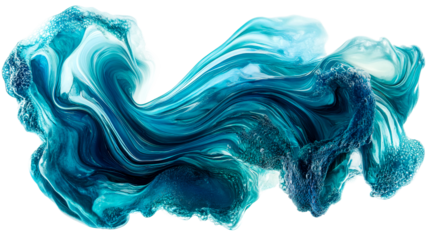 Abstract turquoise flowing liquid with detailed texture. cut out transparent