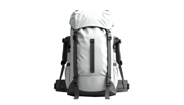 A detailed perspective view of a standard shipping container isolated on transparent background