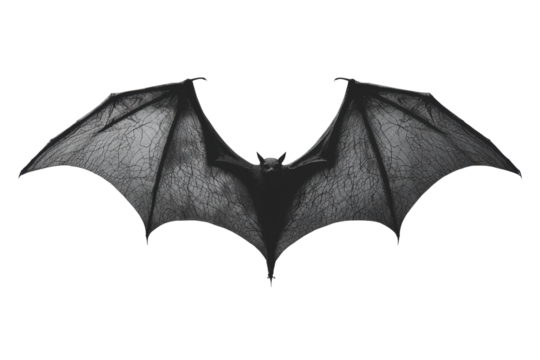 A bat with wings spread, detailed wing membrane texture, realistic but clean design, white background